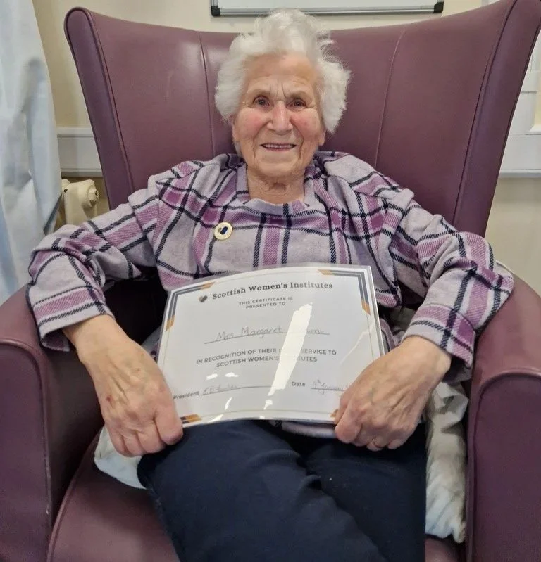 Irene reminded everyone that today had been Margaret Brown’s funeral. Margaret was an honorary and much valued member of Carsphairn SWI. Reminiscences were shared and Irene passed round a photo of Margaret and Susie on an outing to Port Logan Botanic Gardens. These brought smiles all round.