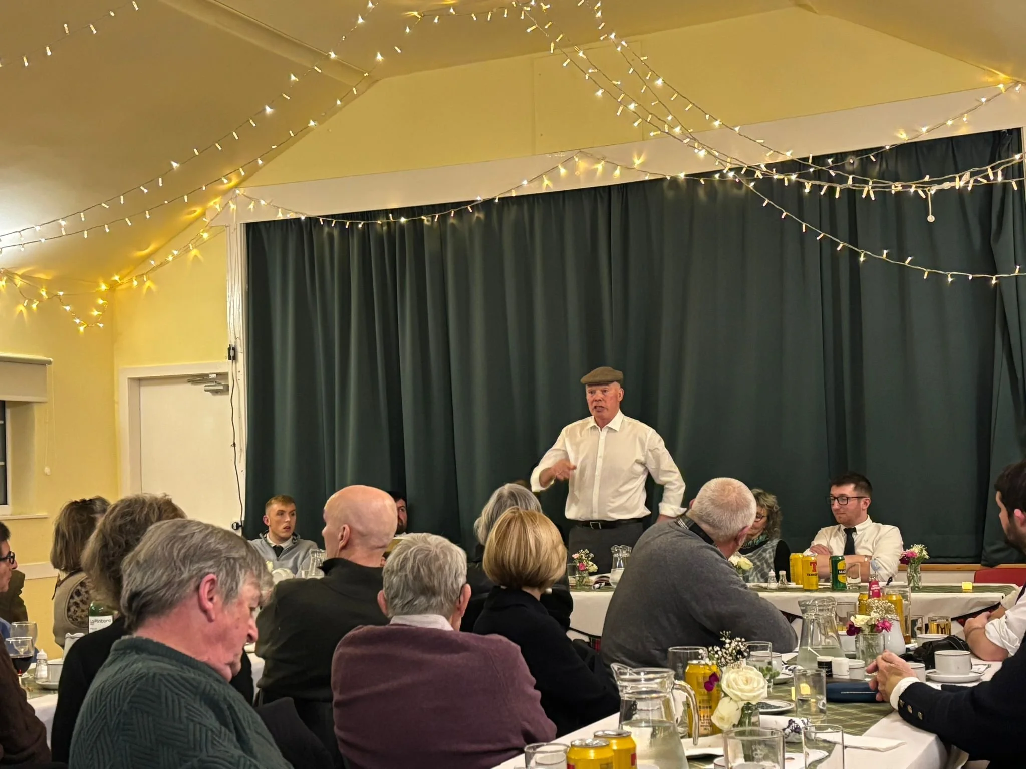 As the night’s entertainment commenced, the room all stood to their feet to welcome the prepared haggis, with the sound of the young piper, Robbie Logan from Penpont who captivated the room with his rich sounds from the bagpipes. He was closely accompanied by Melissa Ade, who proudly carried the dressed haggis around the room and towards the top table of speakers. Upon arrival to the top table, James Wallace (Junior) held the audience’s attention with a theatrical and gripping ‘Address to the Haggis’.