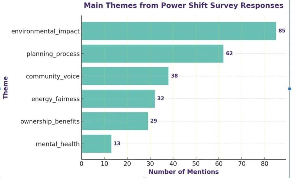 Many of the responses reflected a sense of alienation and detachment from decision-making; concerns over transparency; and anxiety about the environmental, social, and visual impact of developments, especially in small rural communities.