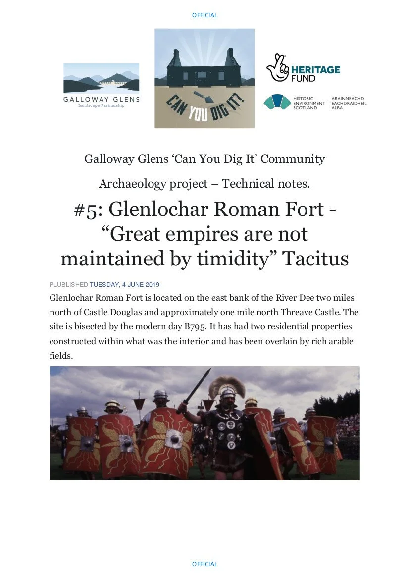Prepared as part of the Galloway Glens Can You Dig It scheme, these notes summarise some of the historic archaeological excavations to have taken place in the Galloway Glens area.